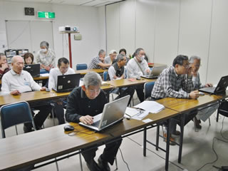 | 第103回開催 | 2日目 | 開催日2010年11月27日 土曜日 | 受講者4名 | 小澤講師 | サポータ11名 | 報告内容: Webの見方(3つの方法)について説明、ピンポイトの天気、路線を使って目的地の経路、運賃、所要時間、姓名分布&ランキングを使って、自分の姓名分布、地図を使って訪問先を番地を入力して探す方法、その地図をプリントアウトし、各自持ち帰ってもらった。またスカイプでテレビ電話が無料で使える説明もして、概ね喜んで頂いた。 恒例の修了証を作成の上、各自に手渡した
