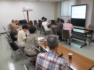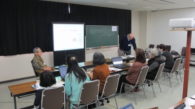 中村守三講師 | サポーター8名 | 講習内容: (1)WebとWebブラウザの概要について説明。 (2)目的のWebへたどり着く三つの方法について説明。 ・URLが解っている場合 パソボラ青梅ホームページ、朝日新聞のホームページを 見る基本操作を体験。 ・ジャンルが解っている場合 ヤフージャパンのWebページから天気予報、自宅地図、 路線などの検索を体験。 ・特徴が解っている場合 GoogleのWebページから青梅市ハザードマップ 他を検索した。 (3)Skypeの体験を実施した。 ・音声が途切れて十分な会話はできなかったが体験はできた。 (4)当会の活動目的等についてパンフレットを配布して、説明した。 (5)その他 ・印刷設定が悪く受講者へ体験講習終了証を渡せなかった。 |
